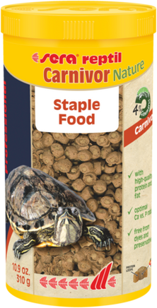sera reptil Professional Carnivor is the supplementary food, consisting of a floating two-colored granules manufactured in the highly functional co-extrusion process, for all carnivorous reptiles such as terrapins.
